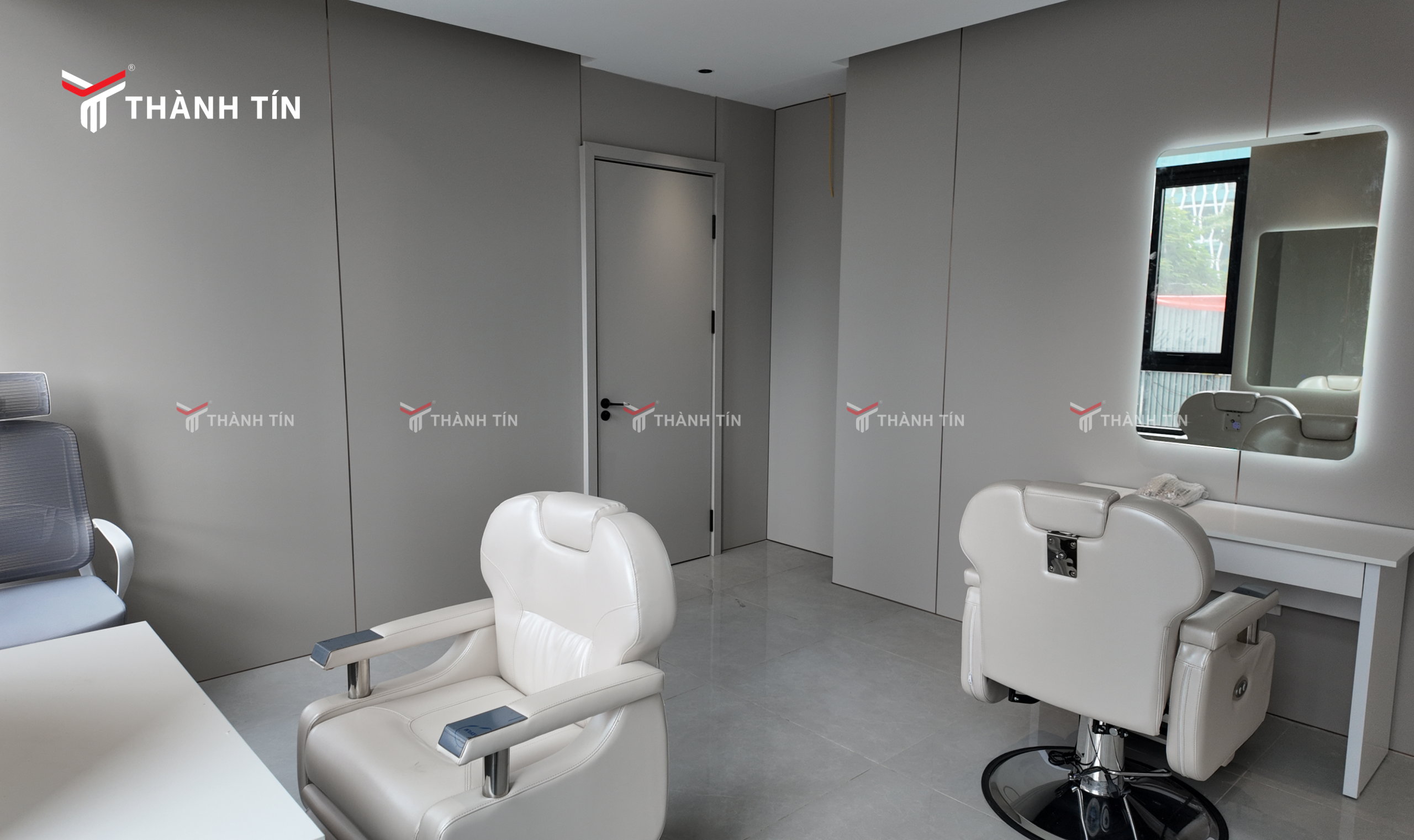 Điểm cộng lớn nhất chính là khả năng đồng màu tuyệt đối với tấm ốp tường, giúp tổng thể không gian trở nên liền mạch, tinh tế và thể hiện rõ sự đầu tư trong từng chi tiết thiết kế.