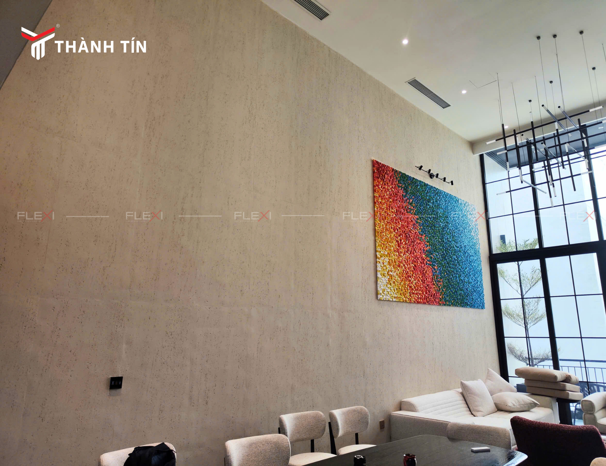 Để khắc phục nhược điểm của đá tự nhiên, tấm ốp đá dẻo travertine Flexi MCM của Nội thất Thành Tín ra đời như một giải pháp tối ưu, giữ nguyên thẩm mỹ nhưng cải thiện hiệu năng sử dụng.